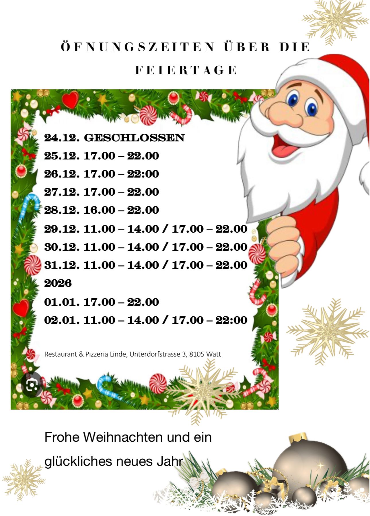 Entdecken Sie kulinarische Höhepunkte im Herzen des Traditionshauses «Restaurant & Pizzeria Linde Watt», das nun in neuem Glanz erstrahlt. Bei uns erleben Sie eine vielfältige Auswahl an köstlichen Gerichten – von klassischer Pizza und Pasta bis hin zu exquisiten Fleisch- und Fischspezialitäten, darunter unser berühmtes Cordon Bleu. Genießen Sie Ihre Mahlzeit in unseren hellen, modern gestalteten Innenräumen oder auf der sonnigen Terrasse, die zum Verweilen einlädt. Lassen Sie sich von unserer Gastfreundschaft verzaubern und genießen Sie unvergessliche Momente bei «Linde Watt». Herzlich Willkommen!